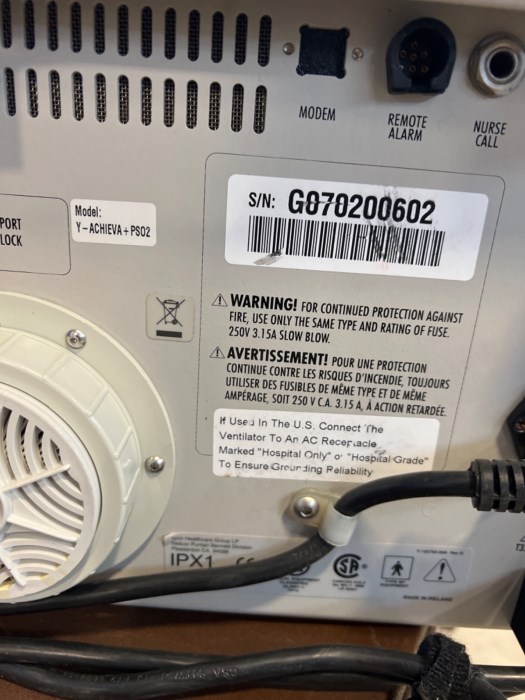 VENTILATOR, PORTABLE ACHIEVA PURTAIN BENNETT D/S by soma technology **POWERED ON AT TIME OF AUCTION** **LOT OF ONE**