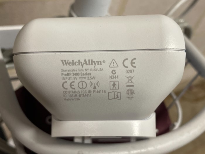 WelchAllun Pro BP 3400 Series Rolling Blood Pressure Cuff/Monitor - Powered on at time of auction Includes: - (3) WelchAllyn Blood Pressure Cuffs