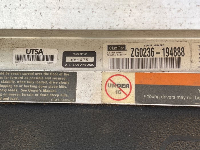 Club Car Carryall 252 Gas Utility Cart w/ Hydraulic Bucket - Serial #: ZG0236-194888 - Keys are not included
