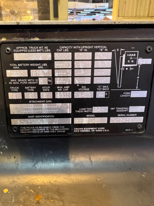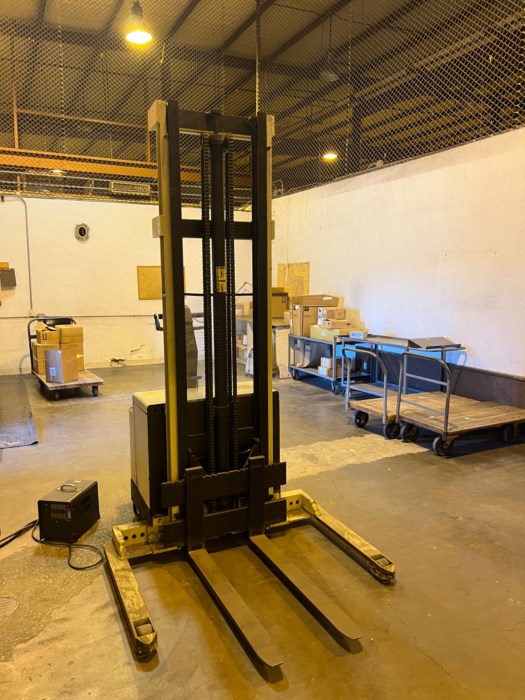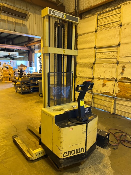 CROWN 30WTL-S 2700LB. 24V ELECTRIC WALK-BEHIND FORK TRUCK/W CHARGER ***BOTH FORKLIFT AND CHARGER OPERATIONAL AT TIME OF AUCTION***