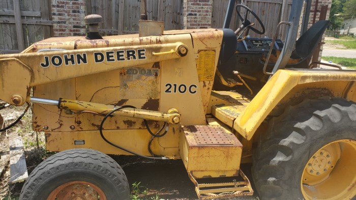 John Deere 210C Skip Loader 1yd Bucket 3pt Hitch jd 239 engine 4cyl 58hp Diesel ROPS -OPEN 2WD 4speed trans Diff lock Runs in all gears Hours 3096 showing