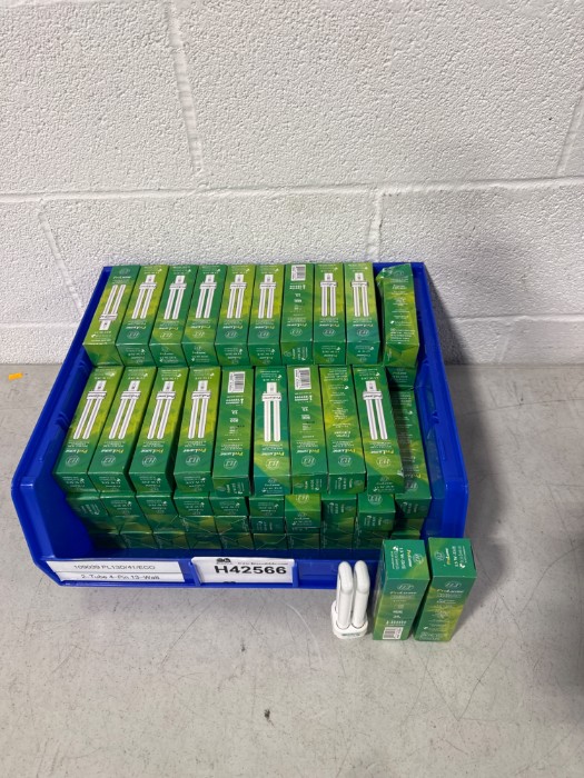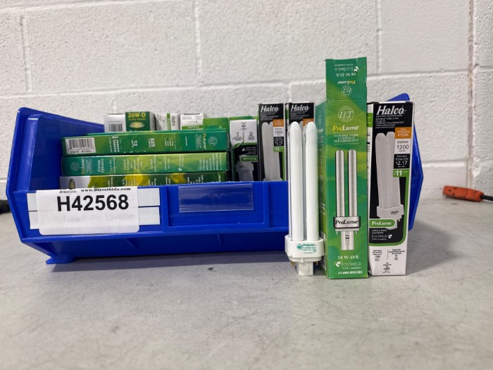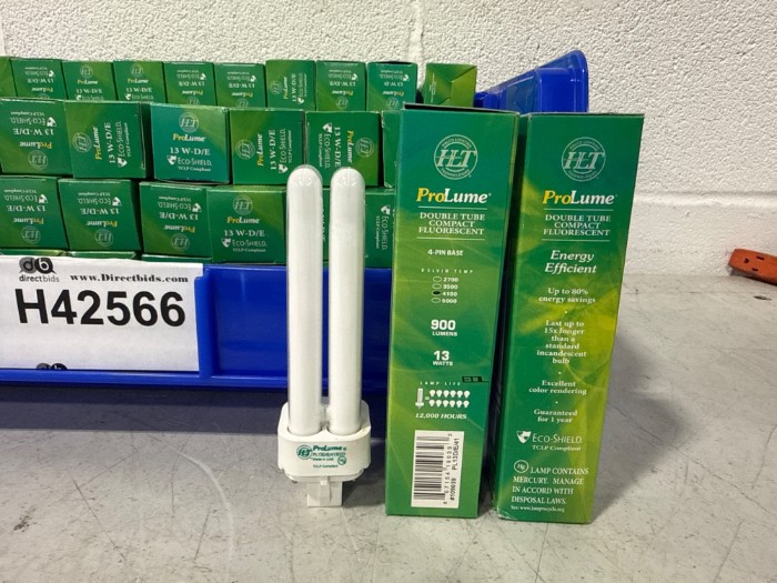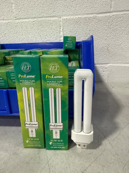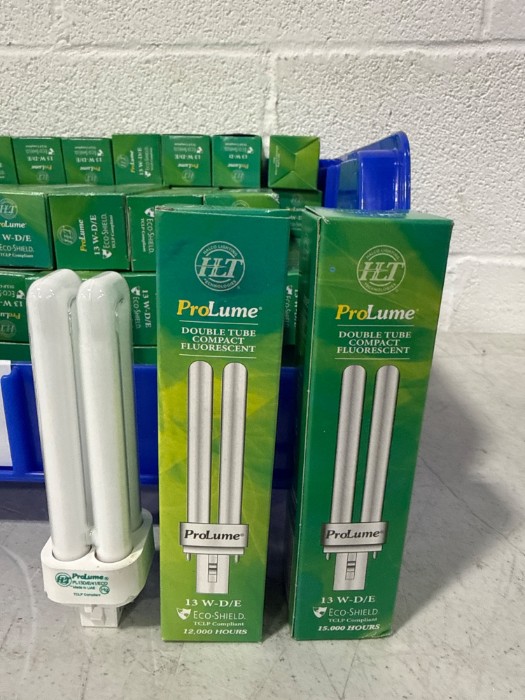 Box of ProLume 13W-D/E ECO Shield Double Tube Compact Fluorescent Light Bulbs (Lot#: H42566 - ID: z1o9f0nj)