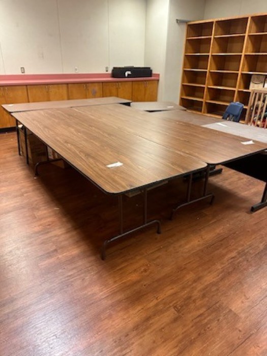 Large amount of items for childcare classrooms/center. Many items listed below, but not entire lot: - 3 wooden top table with metal legs - Bulletin Board Paper Holder with paper - Die Cuts - 4 Rolling Blue Padded Chairs - Woodedn Crib - 3 Wooden Folding Leg Tables As is no warranty - Used Conditions