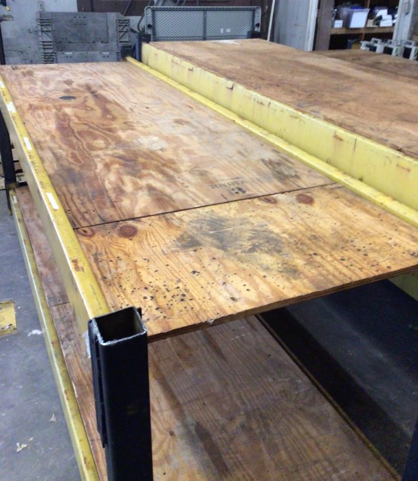 These are heavy duty shop shelves Dimensions 2-Large shelves 10ft long x 39in width x 50in height 2-Small shelves 10ft long x 39in width x 46in height