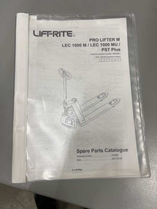 LIFT-RITE PRO LIFTER MOTORIZED MODEL#LEC1000M ***COMES WITH MANUAL AND SPARE PARTS CATALOGUE*** **NOT RUNNING BUT PART NEEDED BELOW** ***PART NEEDED IS 208513***