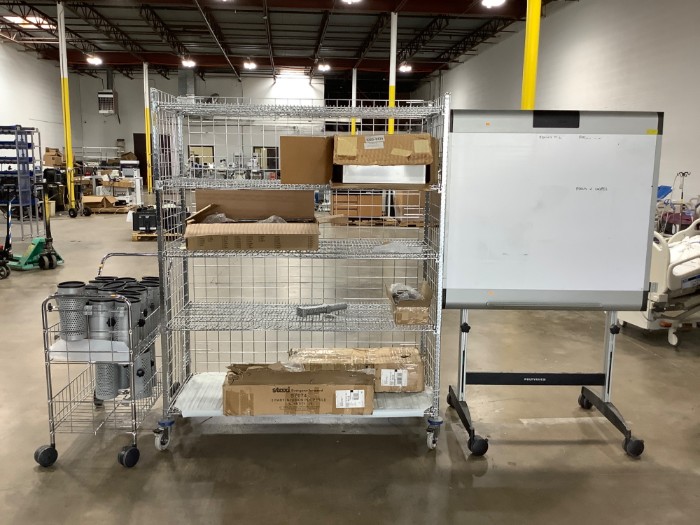 PolyVision Mobile dry-erase whiteboard Storage Shelve Unit on wheels Infusion Pump Poles Utility Cart with oxygen cylinder holders