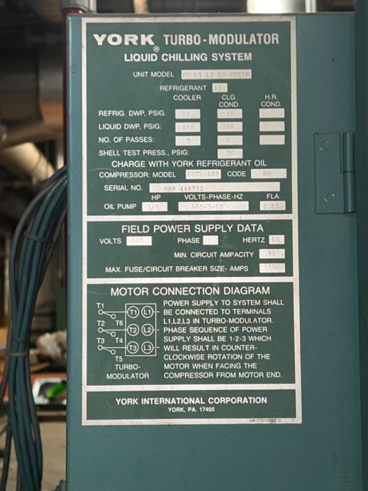 York Turbo-Modulator Liquid Chilling System - Refrigerant has been removed from unit